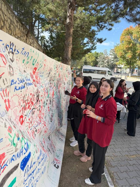 Bu anlamlı etkinliğin hazırlanmasında emeği geçen tüm öğretmenlerimize ve öğrencilerimize teşekkür ediyor, “Filistin yalnız değildir” diyoruz..