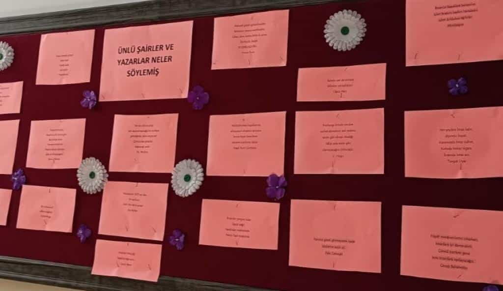 Okulumuz Kültür Edebiyat ve Kütüphanecilik Kulübü, hazırladıkları özgün ve anlamlı çalışmalarla okul panolarını yeniden düzenledi. Her bir köşede emeğin, estetiğin ve edebiyat sevgisinin izleri hissedildi.
